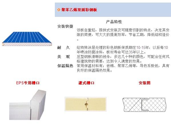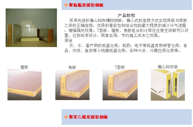 應(yīng)用于組合冷庫(kù)上的夾芯板分為兩種類型,分別為聚氨脂夾芯板和聚苯乙烯夾芯板,由于聚氨脂夾芯板的強(qiáng)度、隔熱等性能優(yōu)于聚苯乙烯夾芯板,所以聚氨脂夾芯板通常多應(yīng)用于速凍或庫(kù)溫較低的低溫庫(kù)上,聚苯乙烯夾芯板則由于隔熱性能較好且價(jià)格適中而通常多應(yīng)用于普通低溫冷庫(kù)、高溫冷庫(kù)和食品加工廠等工業(yè)與民用建筑上。這兩種夾芯板的綜合性能詳見(jiàn)附圖和附表。由于上述兩種夾芯板所具有的優(yōu)良性能,因此可被廣泛應(yīng)用于工業(yè)與民用建筑的其它各領(lǐng)域。