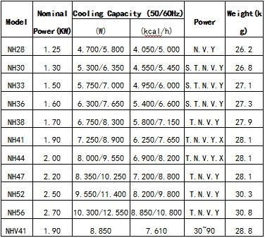 將來自蒸發(fā)器內低溫、低壓的制冷劑氣體壓縮成為高溫、高壓的制冷劑氣體,送入冷凝器冷凝,成為高壓中溫的液態(tài)制冷劑,經過節(jié)流元件(膨脹閥或毛 細管)節(jié)流降壓后再送入蒸發(fā)器,由于蒸發(fā)器內部空間較大,液態(tài)制冷劑在蒸發(fā)器內部汽化并吸收熱量,使蒸發(fā)器表面溫度迅速下降,再配以風機、風葉的旋轉, (水冷機組以水作為載冷劑流過蒸發(fā)器表面帶走冷量)使空氣與蒸發(fā)器對流,完成冷量的交換,將冷量散發(fā)到室內或工作所需場所。