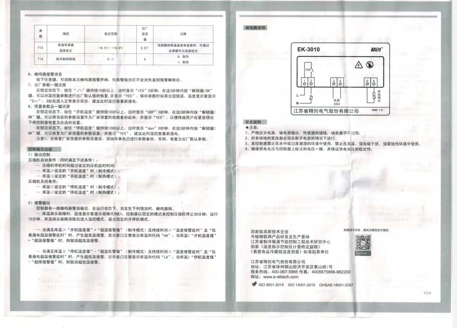 溫控器-精創(chuàng)-EK-3010說明書 、 精巧、精度高、性能穩(wěn)定、觸摸按鍵。